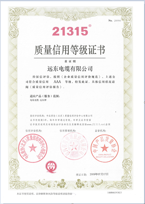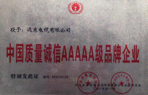 • China Quality Credit Brand Enterprise Level AAAAA