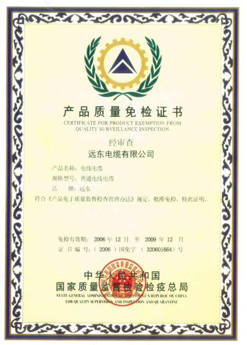 • Certificate for Product Exception from Quality Surveillance Inspection